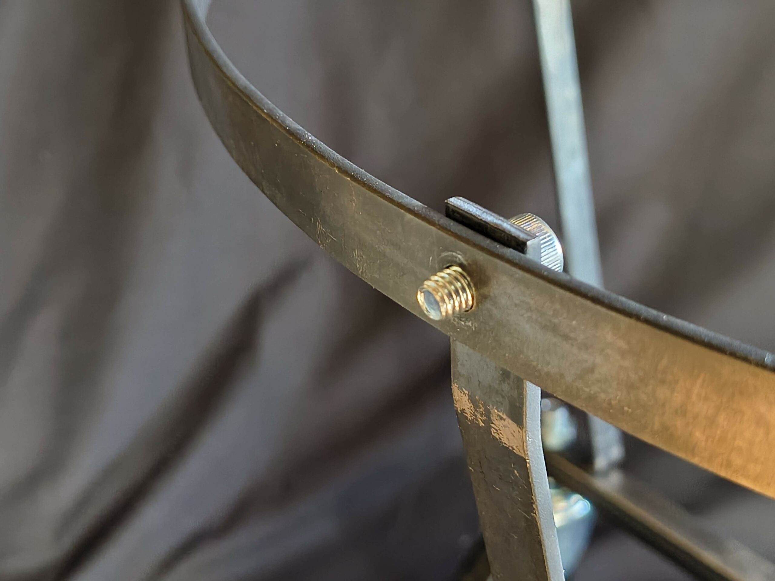 4.リングと支柱パーツの穴を合わせてボルトを内側から挿入する