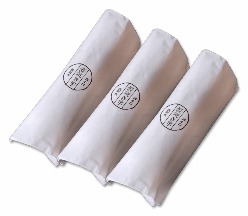 壺焼き芋を一晩寝かせて耐油紙で包装しました。お土産に最適の一品です